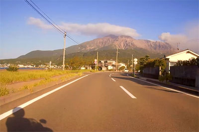 気を取り直して、道の駅を出発して走っていると途中で桜島が見えてきた。 |