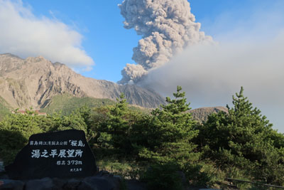 | 噴火は少し怖いが湯之平展望所から見る桜島は景色抜群で、リアルタイムで噴火が見えるところは日本でここだけだと思う。 |