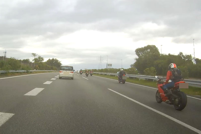 | 鳥栖JCTを越えた先でバイクの集団が現れて次々と追い抜いていく。同じように鹿児島に向かっているのかも知れない。 |
