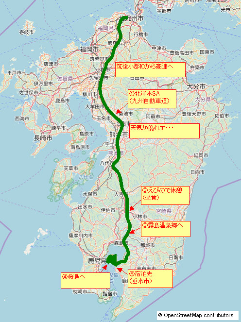 高速代をケチって下道を淡々と走ってきたが、このまま鹿児島まで下道で走ると到着するころには夕方になっているので、筑後小郡ICから一気に鹿児島を目指す。 |