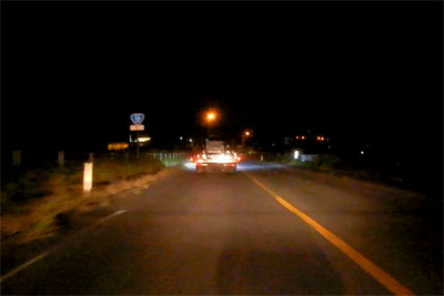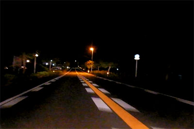 | 18時20分には既に真っ暗になる。この時期は陽が落ちるのも早い。さて、どこまで走ろうか。このあたりはツーリングを楽しめるところはないので、この際、行けるところまで北上したい。 |