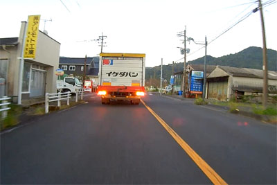 | 国道269号を南下していると、イケダパンのトラックを見つける。鹿児島といえばイケダパン。何かのメディアでイケダパンの特集をしていたので記憶に残っている。 |
