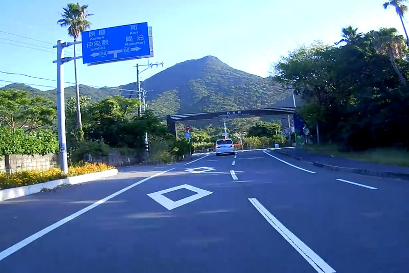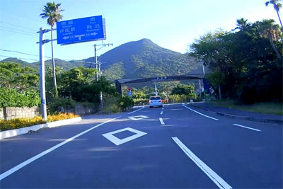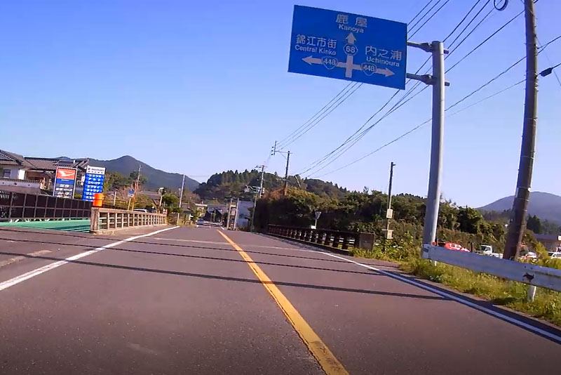 | 県道68号を走って国道448号との分岐にきた。以前のツーリングでは内之浦から佐多岬を目指してきたので、今回はそのまま県道68号で鹿屋方面に出よう。 |