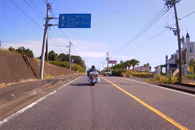 相棒と話をしてこのあとは予定通り、都井岬に向かう。大黒屋リゾートホテルから走り始めてすぐに宮崎県に入る。都井岬まで31キロ。 |