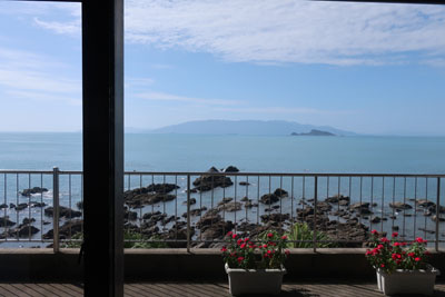大黒リゾートホテルから見る海の景色。こんな綺麗な海を見ながら食事をすると食事が何倍も美味しく感じると思うよ。