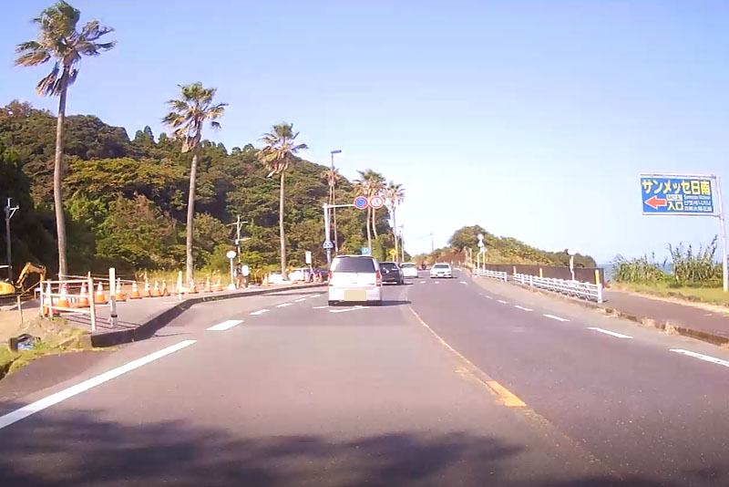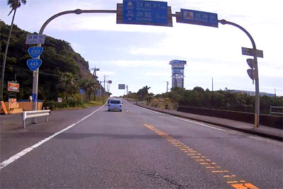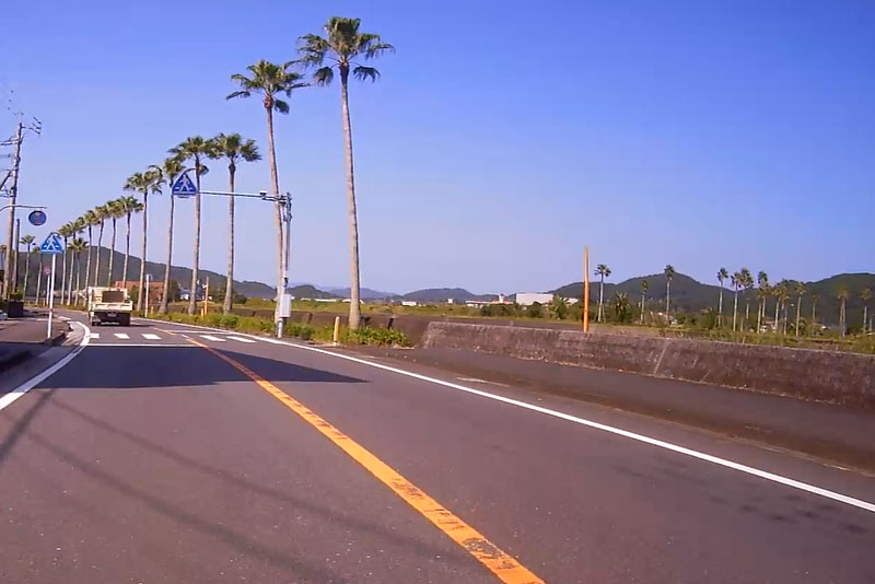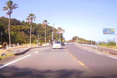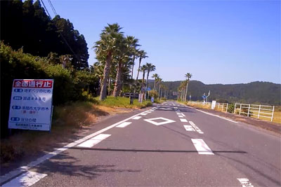 迂回路を経由して再び国道448号へ。ヤシの木が南国ムードを盛り上げる。道の駅「なんごう」に寄りたかったが、迂回路で通り過ぎてしまったようだ。残念。 |