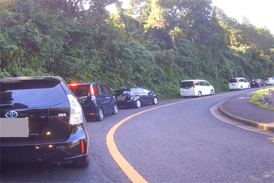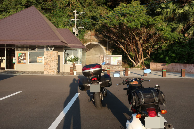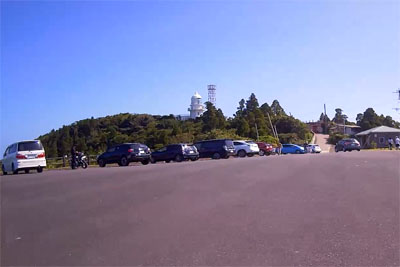| 垂水から1時間半で佐多岬駐車場に到着。日の出前から軽快な道をノンストップで走ってきたので相当気持ちいい。朝7時前だが既にクルマが5、6台停まっている様子。 |
