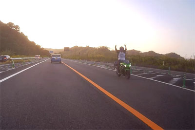 我々人間は空を飛ぶことはできないが、将来、簡単に空を飛べる時代が来れば空をツーリングしたい。今は空を飛べないけど、バイクだと風と一緒になって走ることはできるので今のままでも満足かな。 |