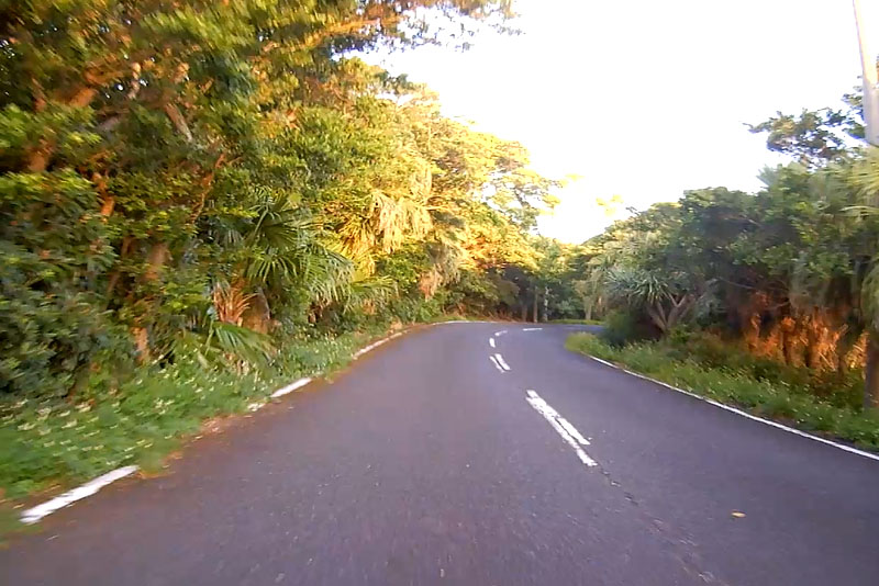 油津から先は海岸線をずっと走る。日南フェニックスロードと呼ばれるこの道路は何回走っても素晴らしいルート。 |