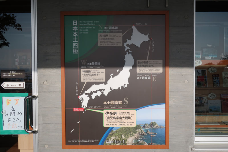 佐多岬は九州の最南端でもあるが日本本土の最南端でもある。北海道の宗谷岬と同じく、ここを目指してくる旅人は多い。Googleマップで調べると佐多岬から宗谷岬まで自走すると約2800キロ!高速道路をずっと走っても39時間もかかるようだ。ただし北海道へは自走で渡れないので青森から函館までフェリー利用となる。