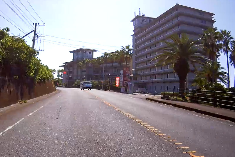 | 宮崎県との県境にある志布志の大黒屋リゾートホテルへ入ってみる。このあたりは昔から何度も走っていて、このホテルの存在は知っていたが、今回、昼食で寄ってみることにした。 |