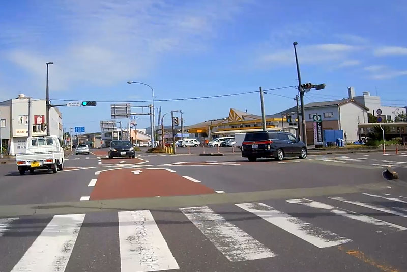 | 串間駅前の交差点から右折して国道448号で都井岬へ。このまま国道220号をまっすぐ行くと日南へ。 |
