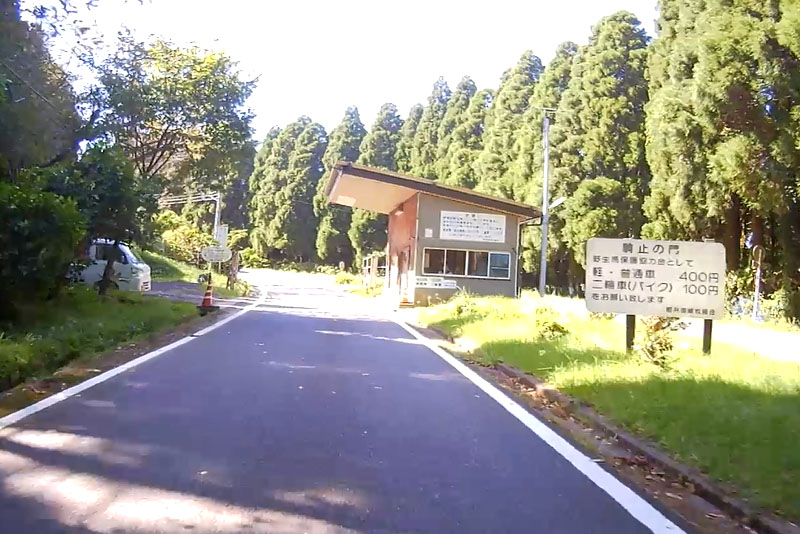 串間市街地から20分ほど走って都井岬の料金所へ。バイクは100円。 |