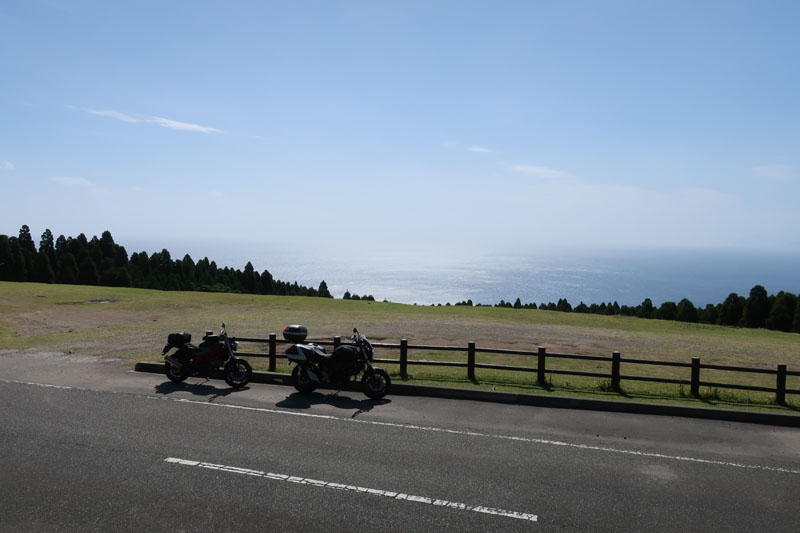 | 20分ほど待ってようやく駐車場へ。バイクは我々のみ。まあ、この手の観光地は家族連れがほとんどでライダーは嫌がるからね。 |