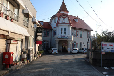 あれがシーボルトの湯。嬉野温泉といえばシーボルトの湯だけど朝から風呂に入ると疲れそうなのとバイクが心配なので今回はパス。 |