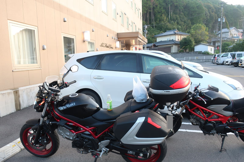 | 朝食を食べた後に外に出てバイクを見ると霜が降りていた。夜はかなり寒かったのだろうか。本来10月下旬だと夜はそれなりに寒いはずだが、日本は温暖化の影響で既に熱帯雨林気候になっているから、この時期でも寒さは感じることはほとんどない。 |