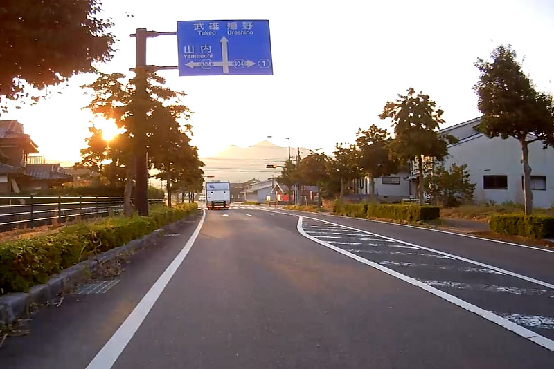 | 波佐見から祐徳稲荷神社は30キロ弱。波佐見~嬉野を通る県道1号と、嬉野~鹿島を通る県道41号が快走路なので気持ちよく走ることができる。 |