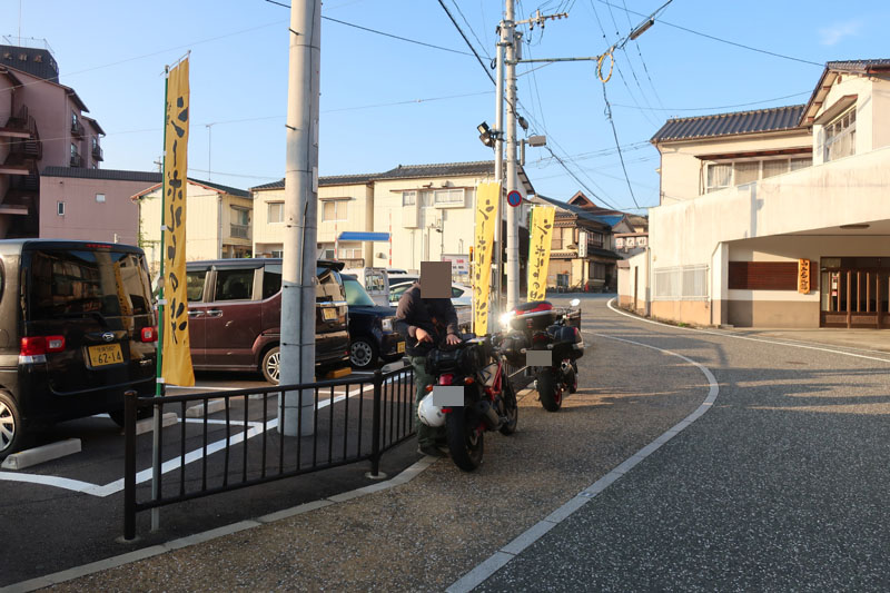 嬉野温泉郷に入ってきたが、バイクを停められる場所を見つけられずに四苦八苦。グルグルと回った挙句に結局は路駐することに。(見つかったら捕まるのですぐに発車できる状態に)