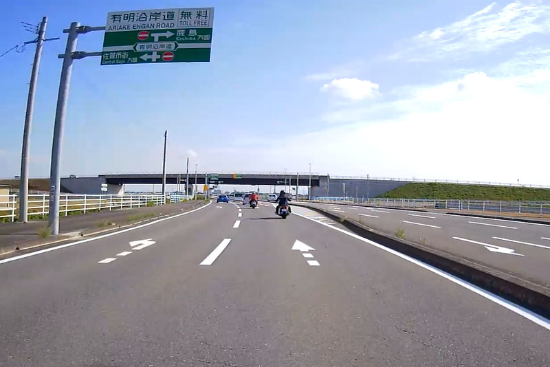 有明沿岸道の標識が出てきた。有明湾沿いに熊本まで通す計画らしいが、こうやってツーリングをしていると未だに建設中の自動車道路の多さに驚く。日本はこれから人口減少が加速して、クルマは自動運転になっていく未来が見える中、現状の道路の維持のほうが遥かに重要と思うけどね。