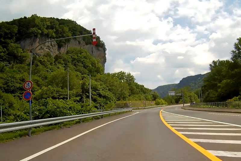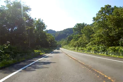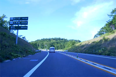 それほど山高いところを走っている感じではないが、道路には信号が一切なくてグングン進む。 |