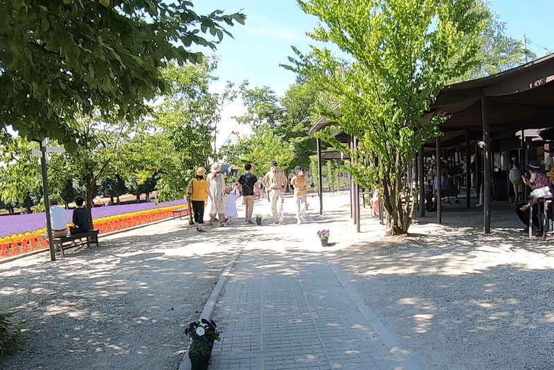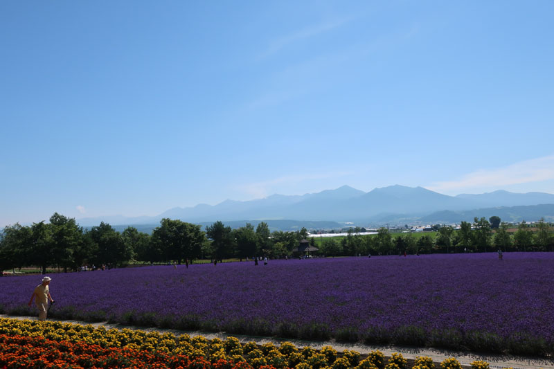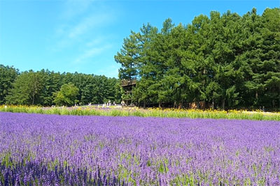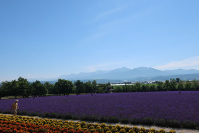 20分ほど走って富良野へ入ると急に視界が開けてきた。最初の目的地のファーム富田へ向かう。ラベンダー畑が有名らしく、7月のちょうどこの時期の景色が凄いらしい。 |