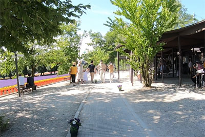 映画のような風景が。紫とピンク、緑の景色がよく映えている。向こうに見える街並みも綺麗でこれは素晴らしいの一言。これが入場無料で見えるのだから本当に驚きだ。