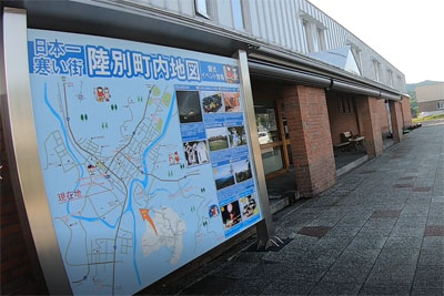| 20分ちょっと走って陸別町に入る。カントリーマークが何やら寒そうだ。 |