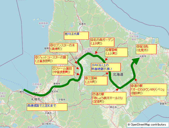 小樽を出てすぐの朝里インターチェンジから高速道路で富良野に向かう。 |