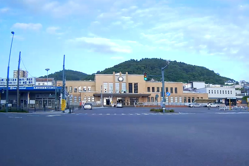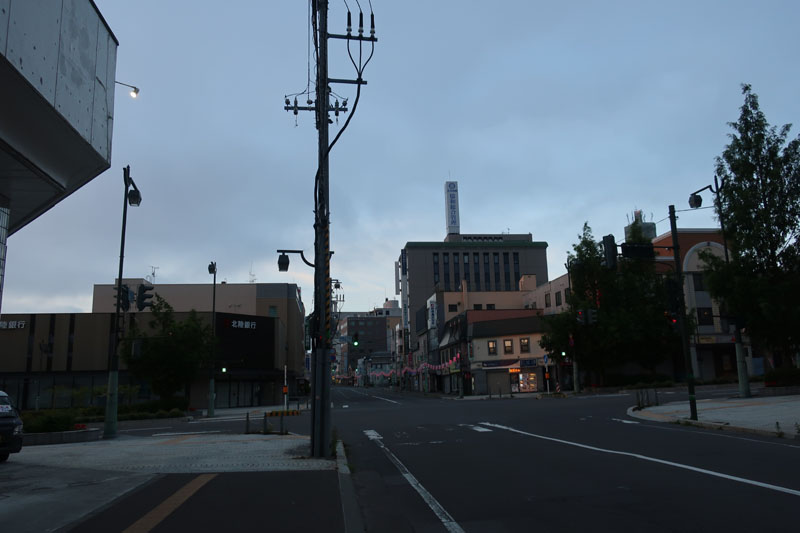 | ホテルを出て小樽駅の前を通過する。朝早いから交通量も皆無で走りやすい。北海道は皆、渋滞がない生活が当たり前だろうから羨ましい。 |