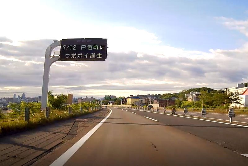 再び高速道路を走り始める。空はずっと雲模様だったが、岩見沢パーキングを過ぎたぐらいで青空が見え始める。 |