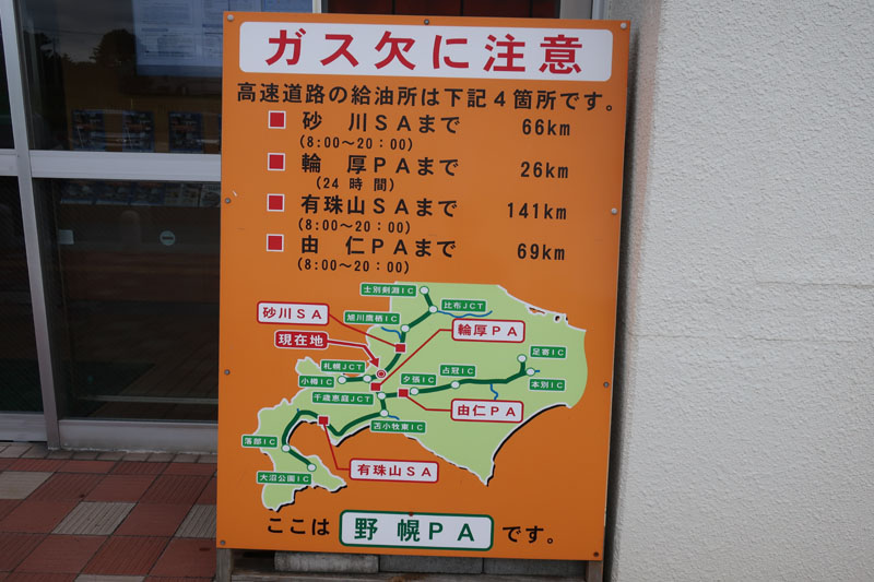 寒いので服装調整をするために野幌パーキングに入る。7年前もここに寄ったと記憶する。 |