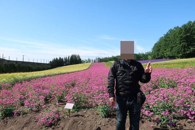 出発準備をしている最中に、ボクの前に停車していたBMWバイクのライダーが話しかけてきた。彼は昨年も北海道に来たらしいが、ずっと雨で散々だったらしく、結局5日間の予定を3日で切り上げて帰ったらしい。なので今日はサイコーですよ!と意気込んでいた。我々と同じく今から富良野方面に向かうとのこと。