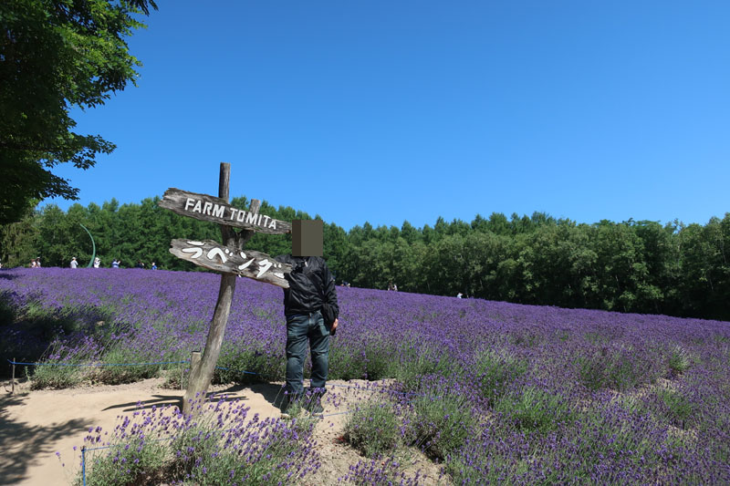 | ラベンダー畑らしい気配がないが、適当に歩いて案内板を発見。バイクを停車したところはファーム富田ではなく、とみたメロンハウスというメロン専門店だったらしい。すぐ横の彩の畑へ行ってみると・・・ |