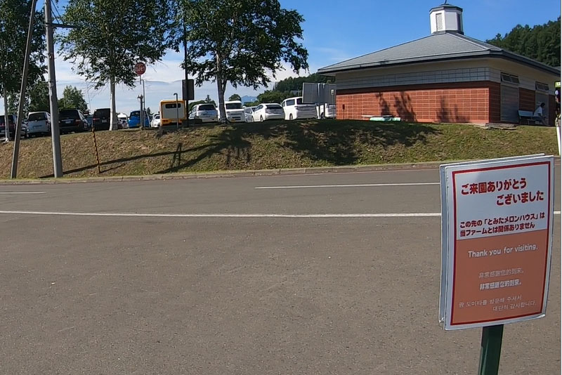 ファーム富田を出ようとした際に、「この先の「とみたメロンハウス」は当ファームとは関係ありません」の看板が。また、至る所に「とみたメロンハウスからの持ち込みはお断りいたします」の張り紙も。