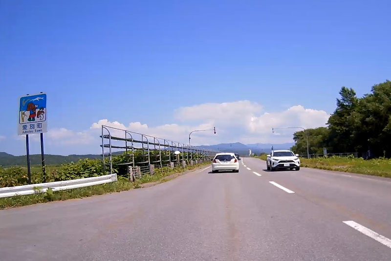 20分ほどロードサイドの道を走らされたが、ようやく市街地を抜けて愛別町へ。ちょうど正午になり相当暑くなってきた。ボクは既にメッシュジャケットの中は半袖1枚だが、相棒はインナーウェアを未だに来ているらしく、汗だくらしい。 |