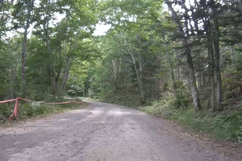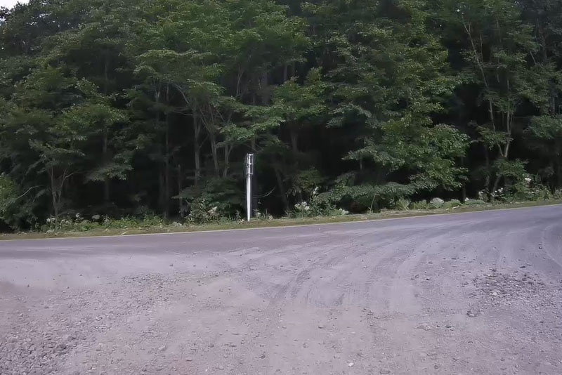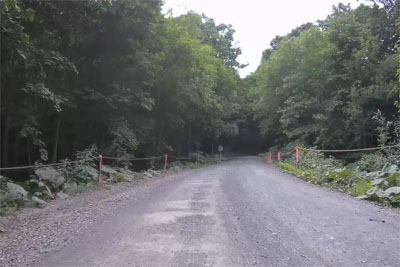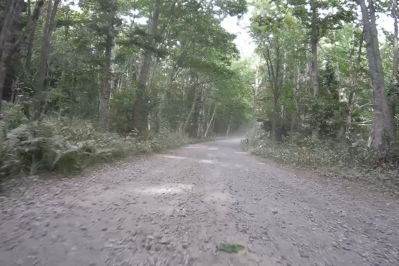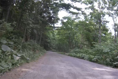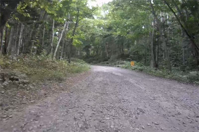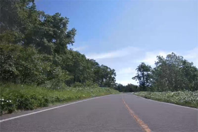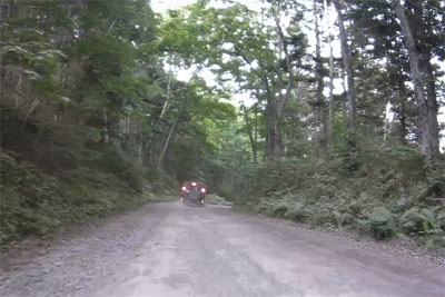 | 緩やかな上り坂を慎重に進んでいく。左側の道が悪いときは対向車が来ていないのを確認して右側に移動して進む。 |