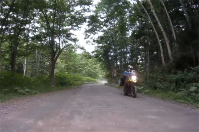 | 下りは上り以上に慎重に。途中、スピードに乗りすぎてまたもや一旦停止。(結構恥ずかしいが転倒するよりマシ) 相棒とインカムで会話する余裕もないよ。 |