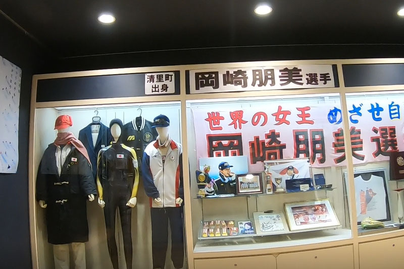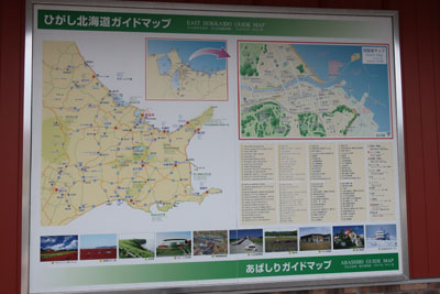 道の駅に入ると最初に目に付いたのは岡崎朋美コーナー。一昨日の足寄の松山千春に続いてまたもこの個人ブース。北海道はこの手のコーナーが多いのか?九州の道の駅では見たことがない。 |