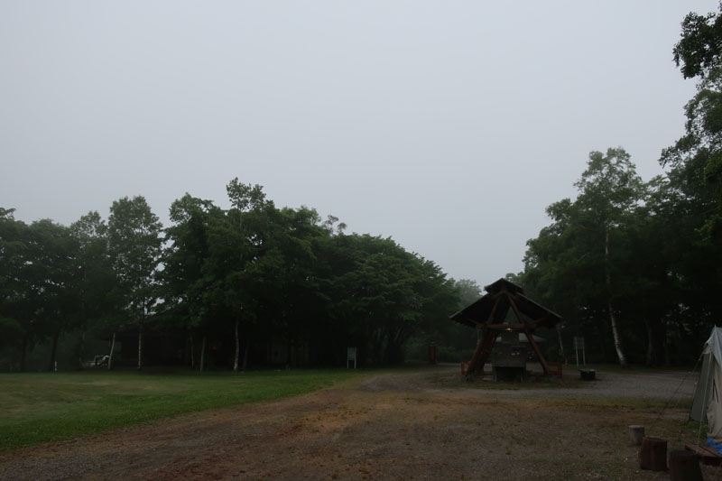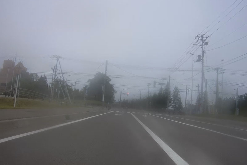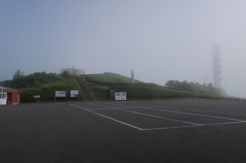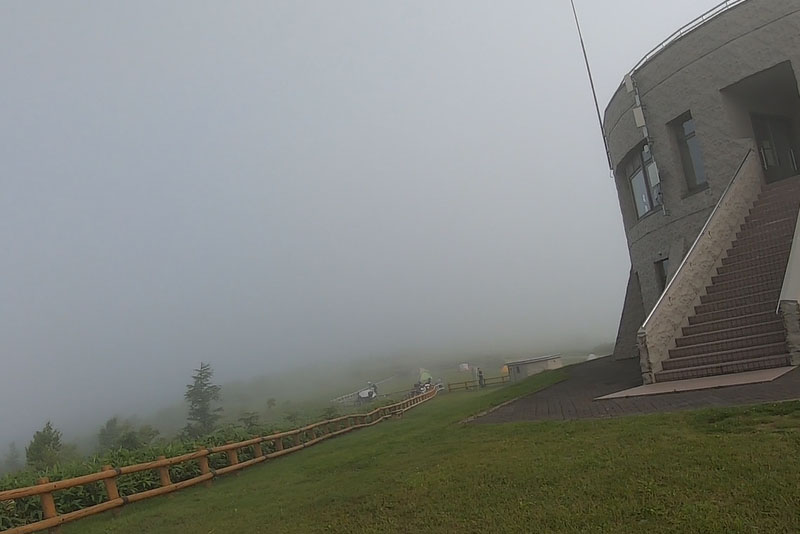 | さて、開陽台に向かおう。キャンプ場を出るとさらに霧が凄くなっていた。 |