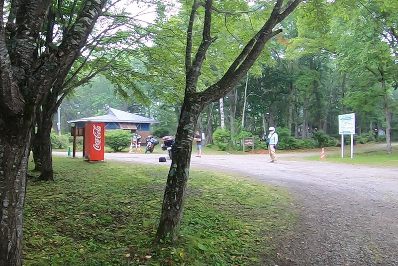 | 開陽台にはキャンプ場はないと思っていたが、建物の先にキャンプをしているライダーが大勢いた。既に数台停まっていたバイクも昨日キャンプして宿泊したバイクだったようだ。これを昨日知っていればここに泊まったのに!(でも緑ヶ丘森林公園も良かったよ) |
