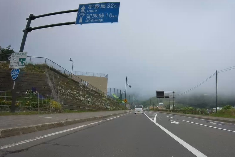 羅臼に繋がる国道335号に入っても霧が晴れる気配はない。しかも段々と寒くなってきた。 |