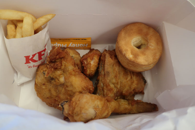 夕飯を食べに行こうと思ったが、東横インの近くに目ぼしい飲食店はなく、色々探していると急に雨が降ってきたので結局、ケンタッキーフライドチキンを買ってホテルに戻るという事態に・・・。(T_T)