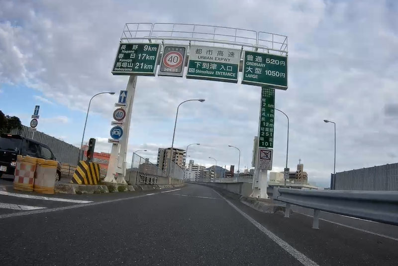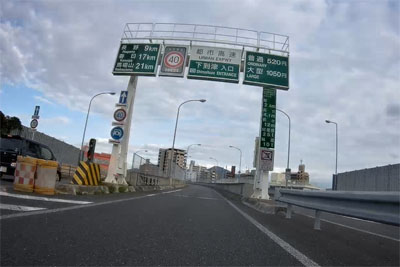 | 戸畑から新門司は同じ北九州市内とはいえ、結構遠くて距離は約22キロ。北九州都市高速(下到津)で門司区の大里(だいり)まで走って下道で新門司へ。 |