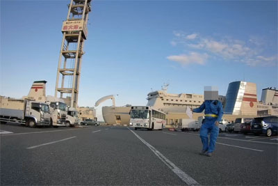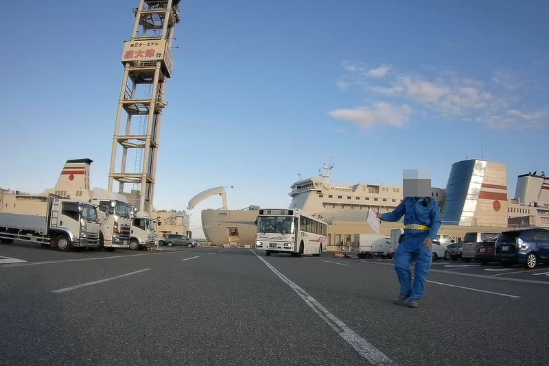 戸畑から30分ほど走って新門司港に到着。現在時刻は16時20分。 |