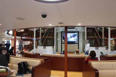 | 船内を探索。「いずみ」になってホールが吹き抜けになったので開放感がある。船は新日本海フェリーの「はまなす」の方が大きいらしいが、旅客船としてはこちらのほうが豪華。 |