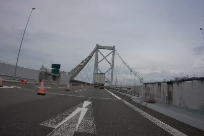 北九州都市高速から九州自動車道へ入って関門橋へ。九州とはしばしお別れ。ソロなので会話もなく淡々と。 |