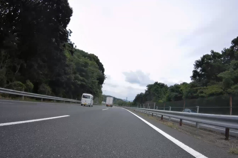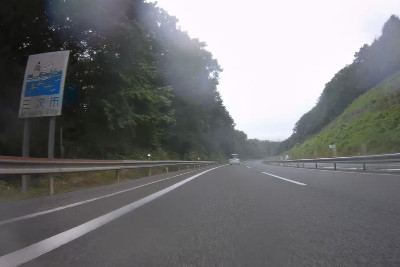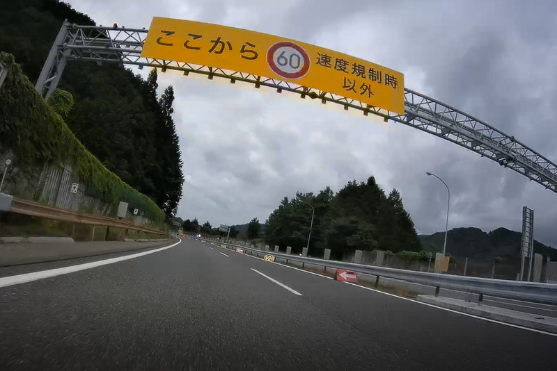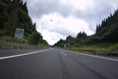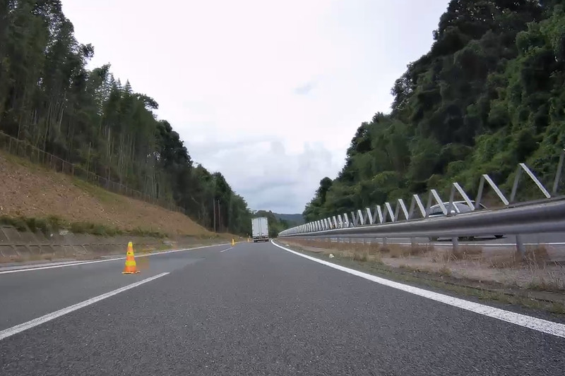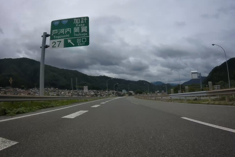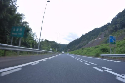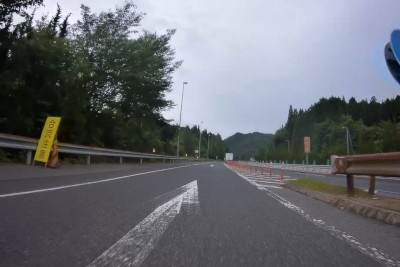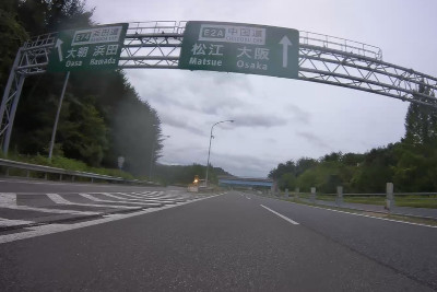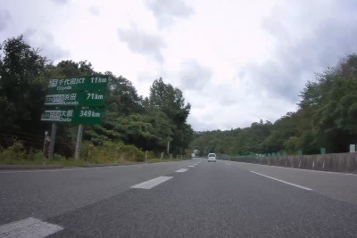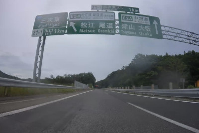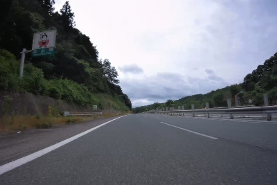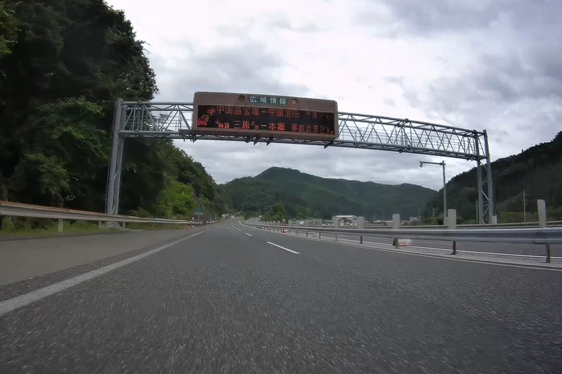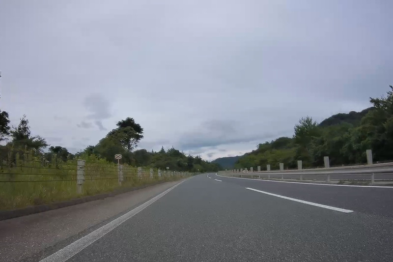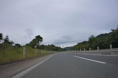 山陽自動車道と分岐した途端にクルマはいなくなる。走りやすさという点では素晴らしい状況だが、天気がイマイチ。曇りが多くなってきて陽が出なくなった。 |
