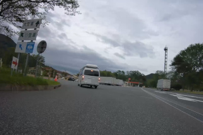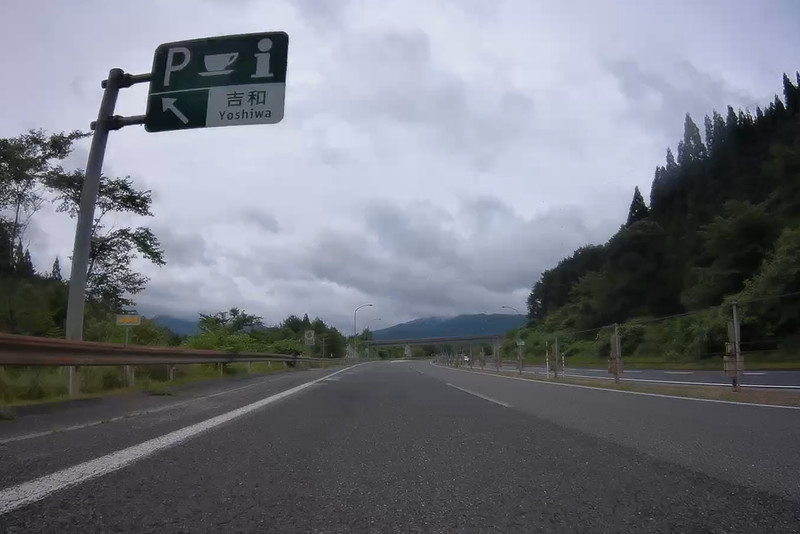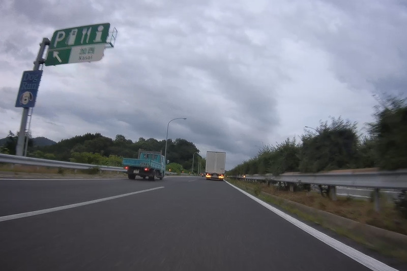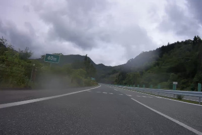 美東サービスエリアから大佐サービスエリアまで一気に走ってきた。天気が悪い分、暑さを感じず、さらに適度に雨に打たれたせいかちょうどいい感じで走ってこれた。晴れていたら暑くてここまで一気には走れなかっただろう。 |