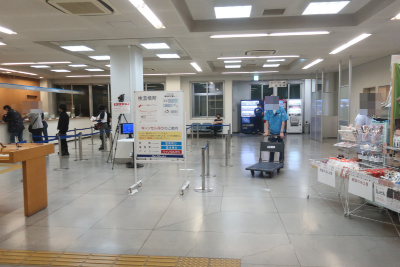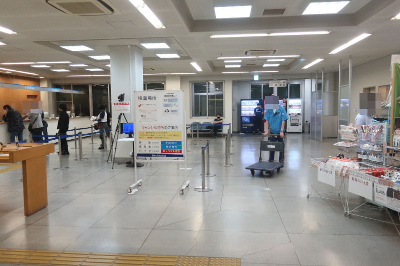 受付のため窓口へ。旅客と乗用車は空きがあるが、バイクは空きなしでキャンセル待ち。 |