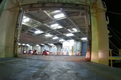 出航まで2時間以上あるのでバイクもまだ少ない。去年同様、この待ち時間がたまらないね。 |